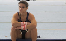 Anastasia Grishina estaba en las sesiones de calentamiento pero cuando llegó la hora de la competición ya no lo estaba. En un principio se decía que tenía lo mismo que Komova, días más tarde me enteré de otro rumor que decía que no había competido por un problema de espalda. Y por el momento no hay confirmación sobre el estado de Grishina.
